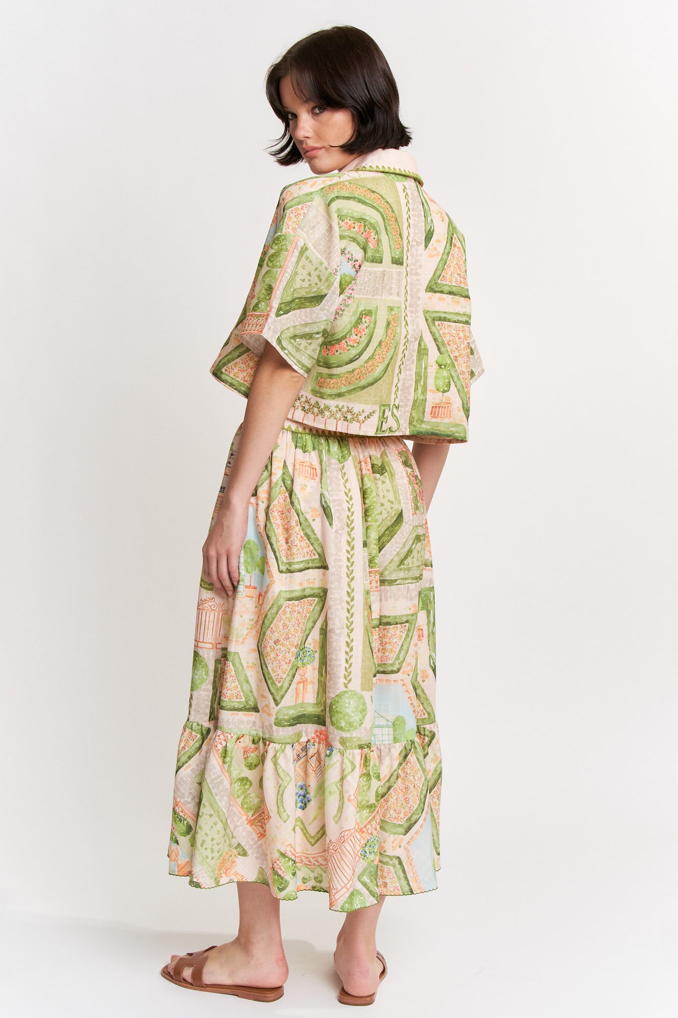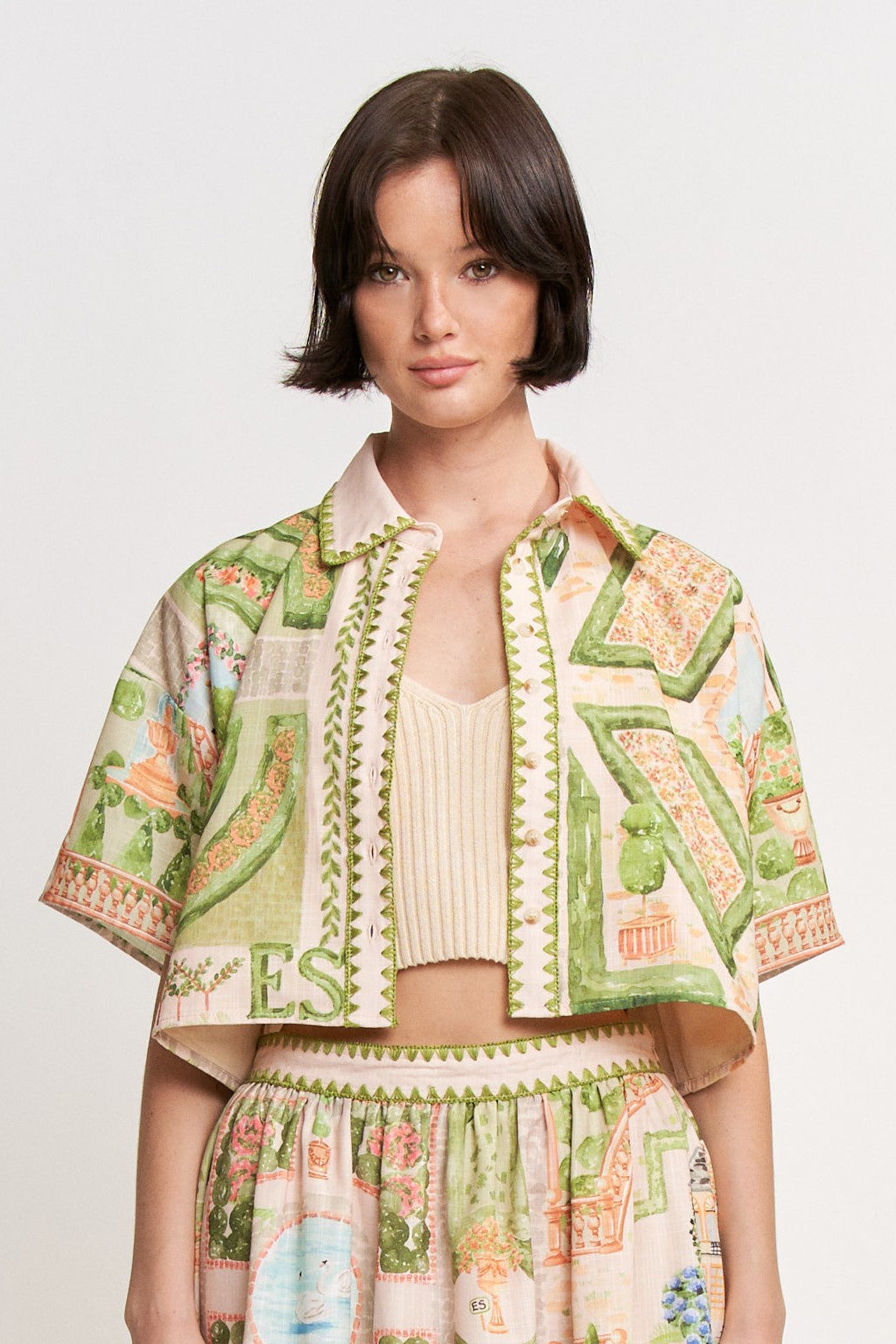 Placement Print Boxy Stich Detail Crop Souvenir Shirt