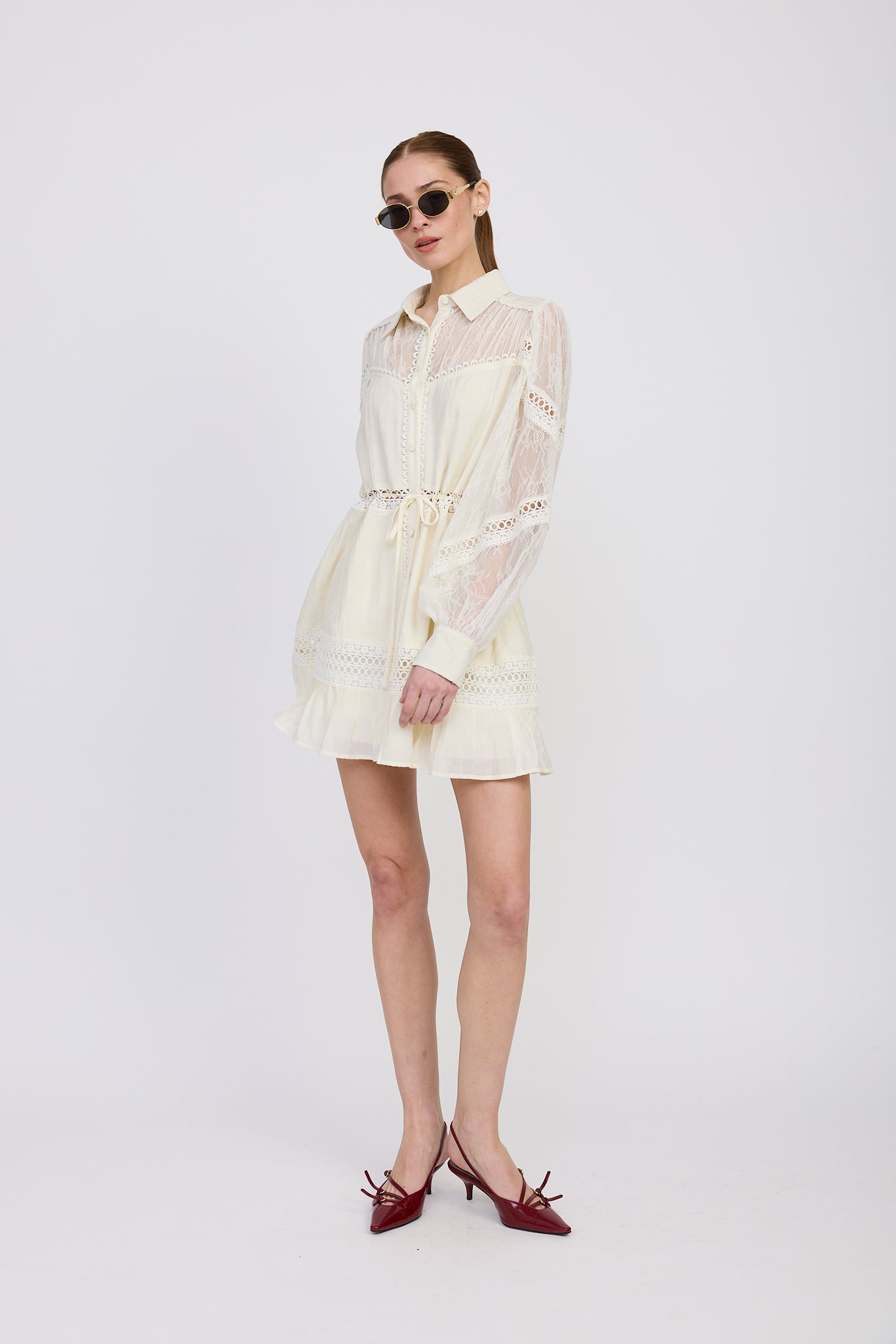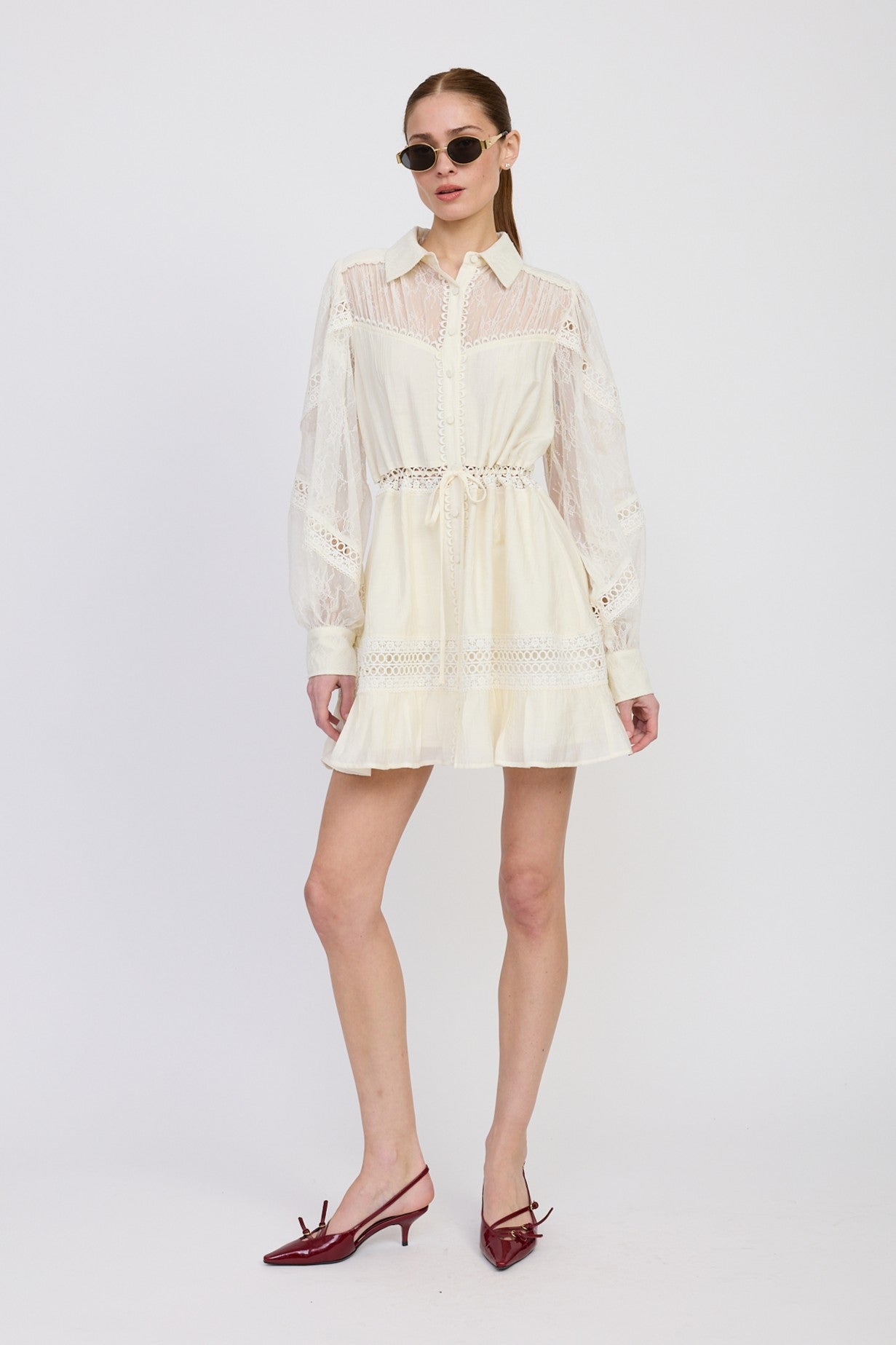 Sheer Illusion Yoke & Sleeve Mini Dress With Crochet Trimming