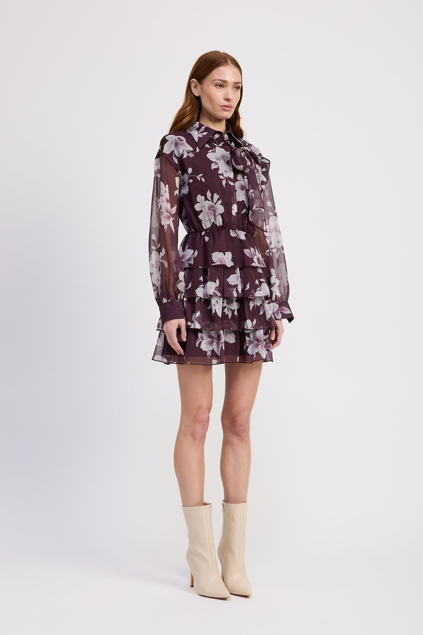 Tie Detail Tiered Ruffle Button Front Collared Mini Shir Dress