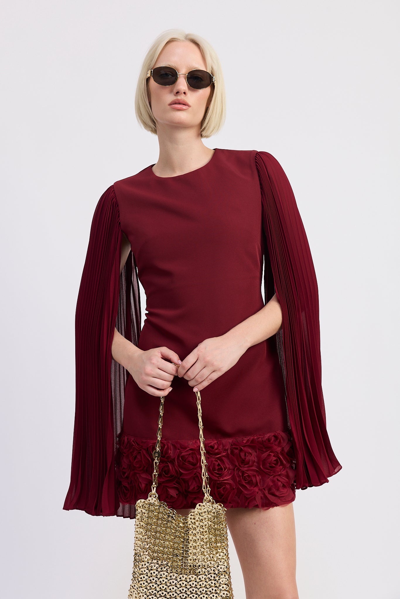 Statement Pleat Cape Sheath Dress With Floral Tulle Hem