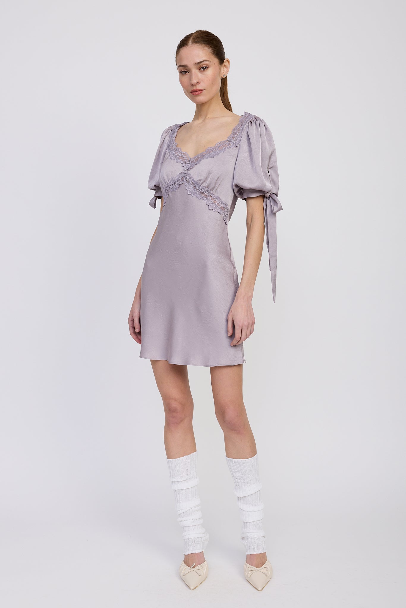 Lace Trim Detail Puff Sleeve Satin Mini Slip Dress