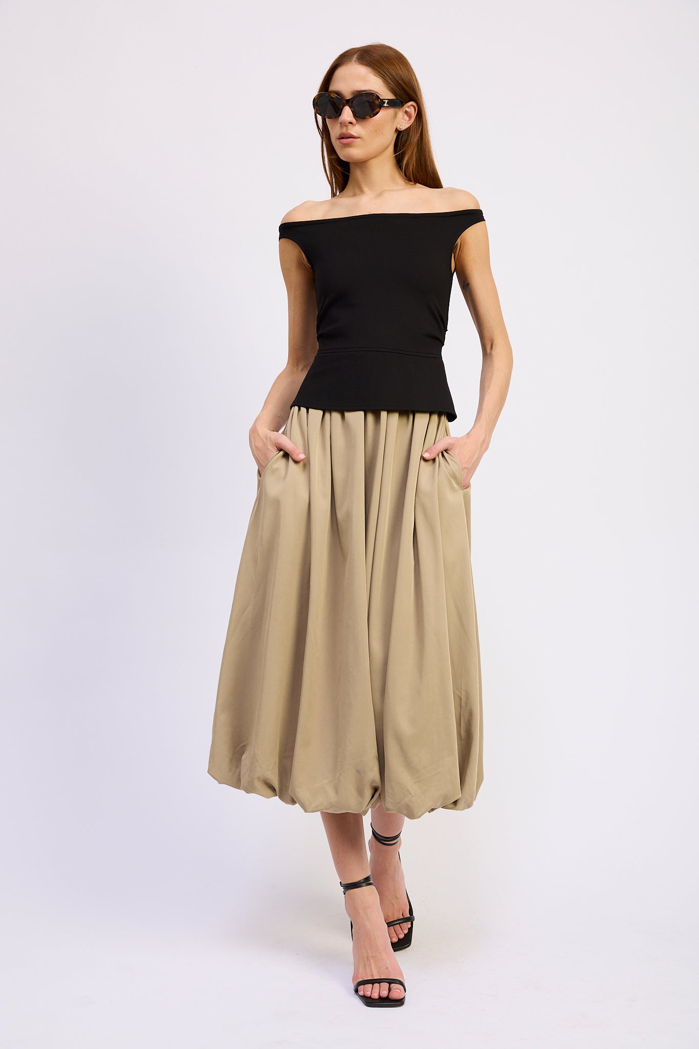 Off Shoulder Bustier With Attached Bubble Hem Skirt With Maxi Skirt
