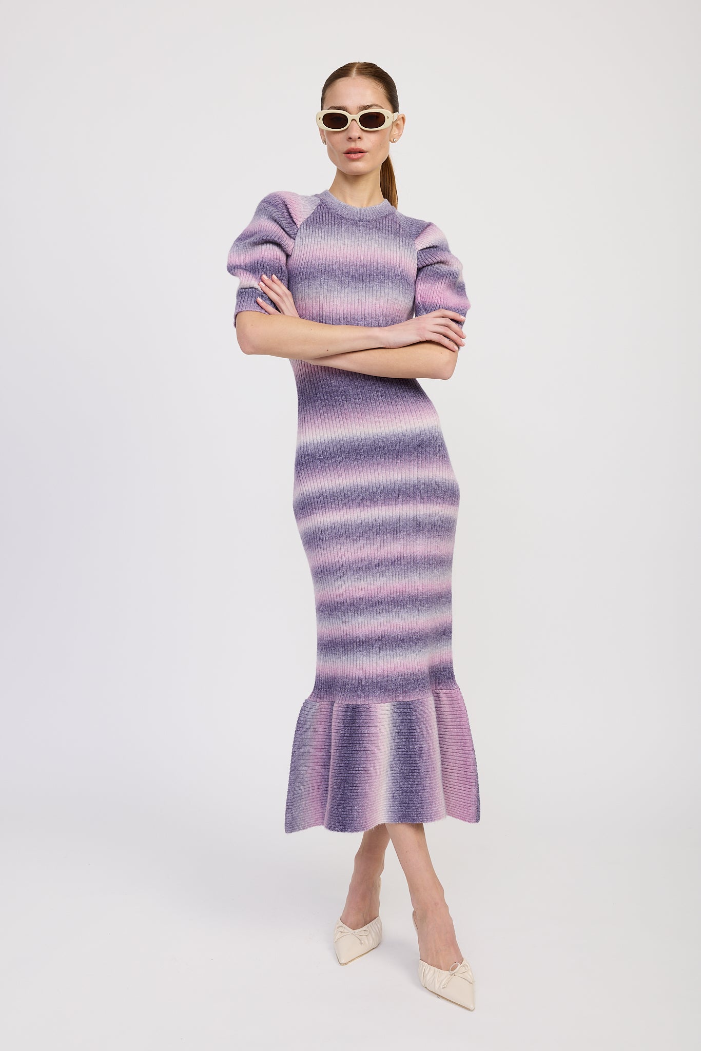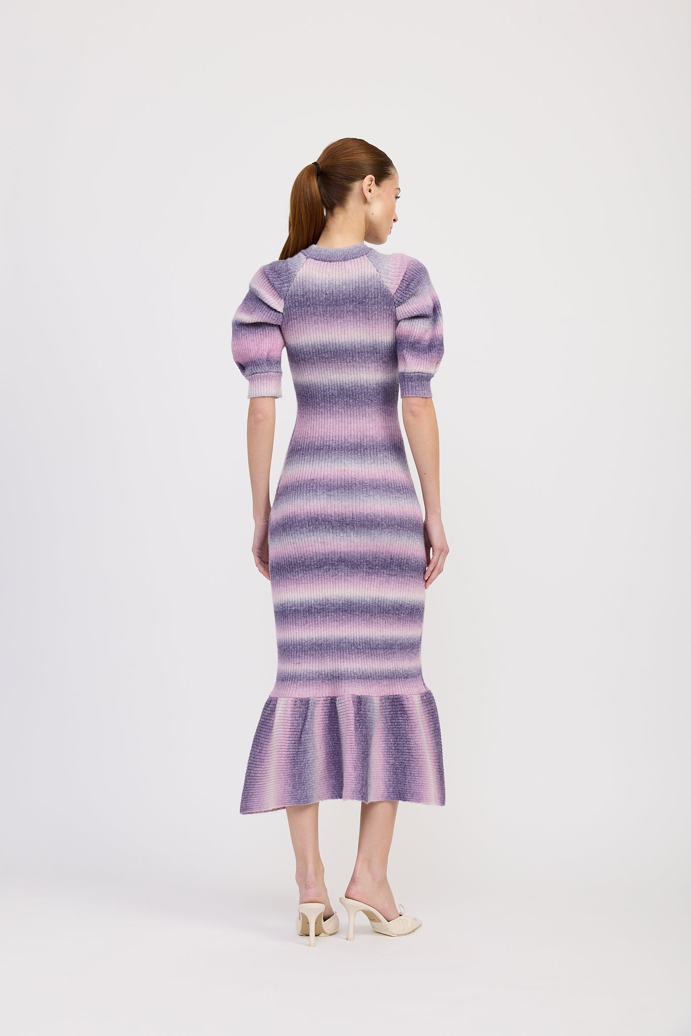 Ombre Knit Ruffle Hem Maxi Sweater Dress