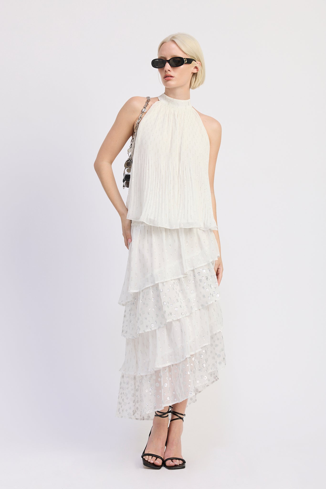 Asymmetric Hem Tiered Hi-Low Maxi Skirt