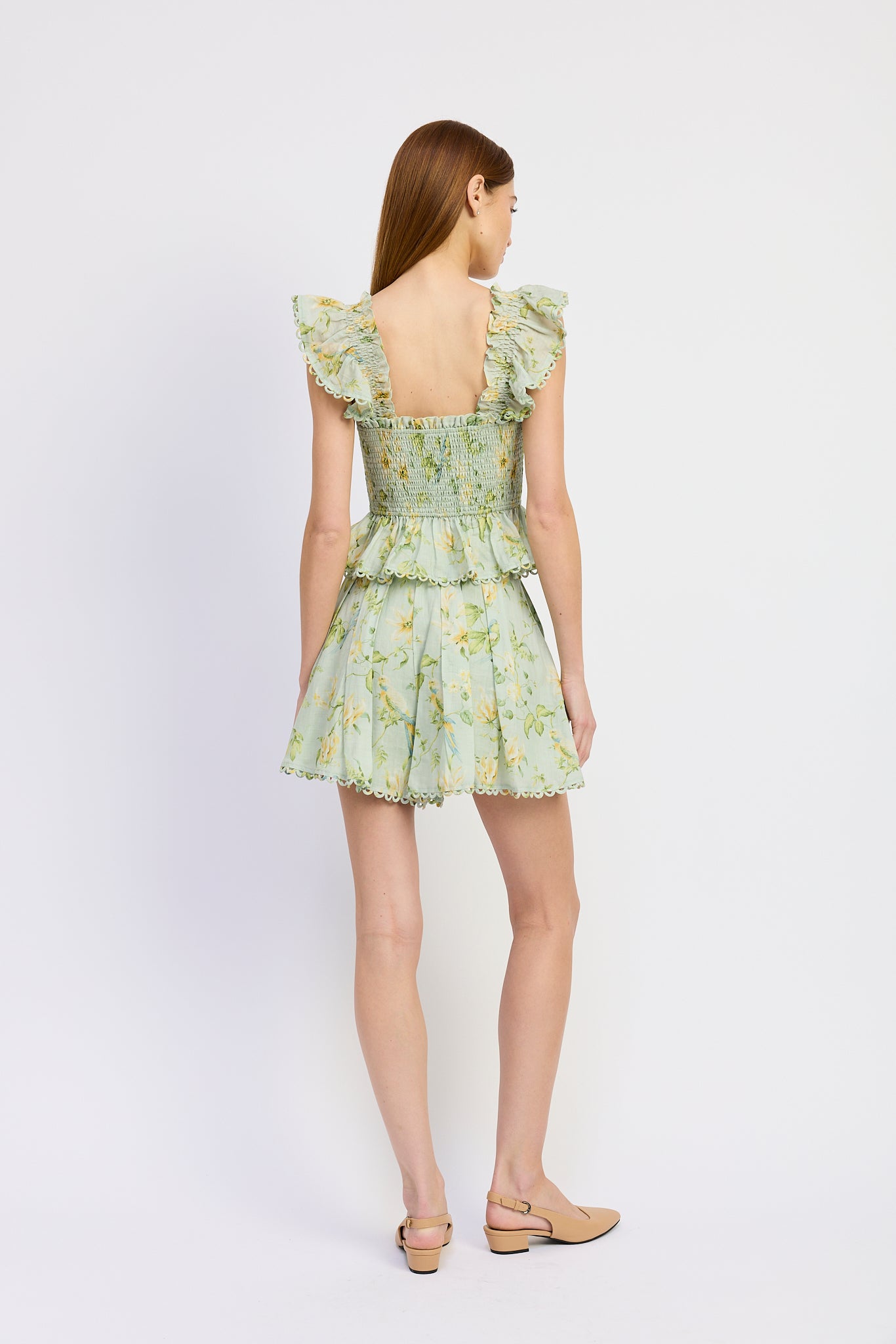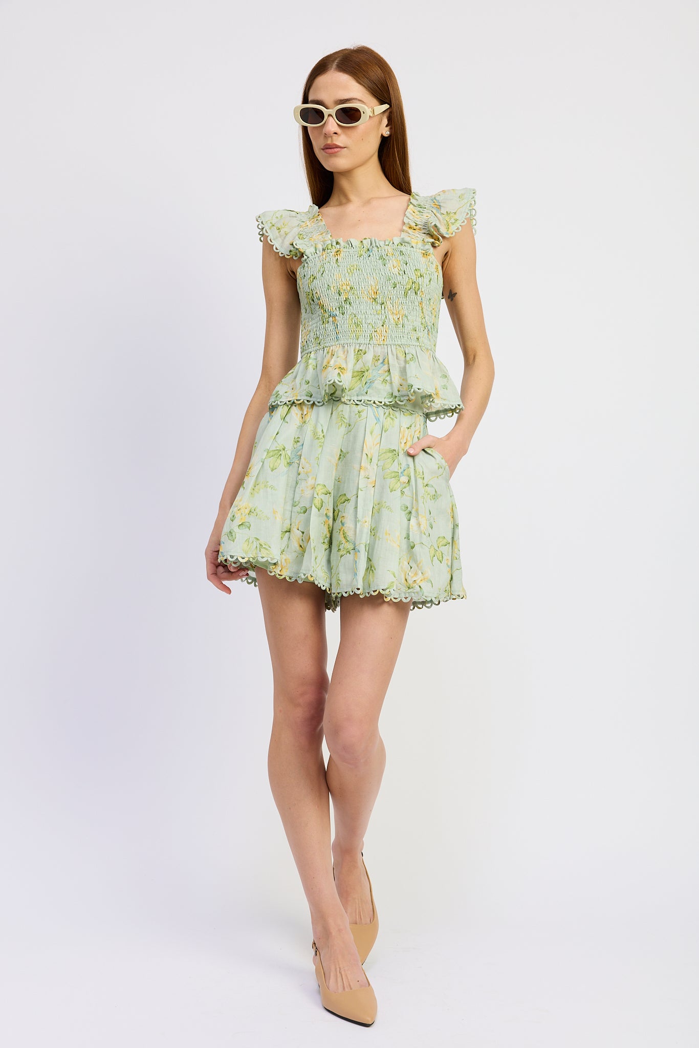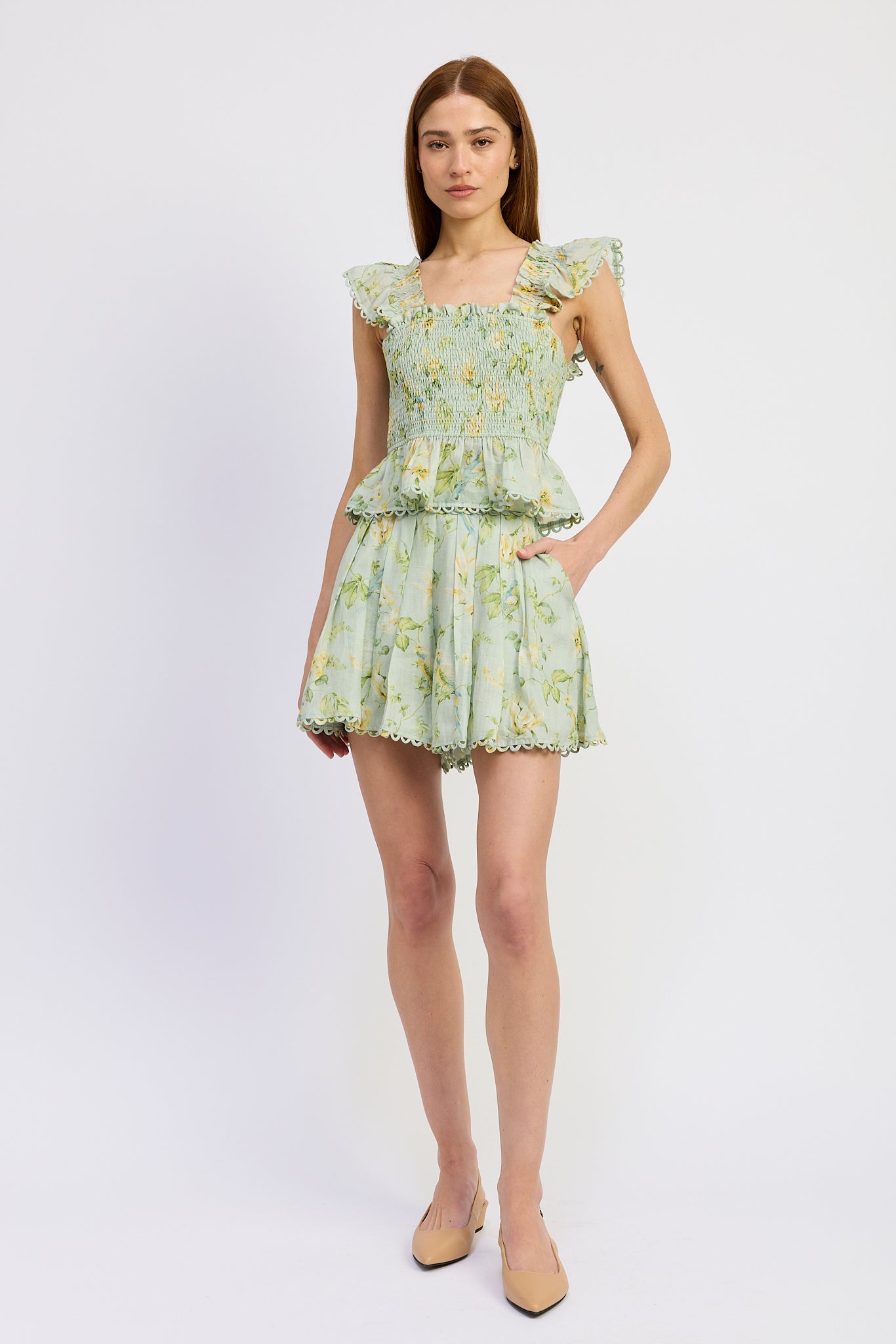 Scallop Trim Banded Waist Box Pleated A-Line Shorts