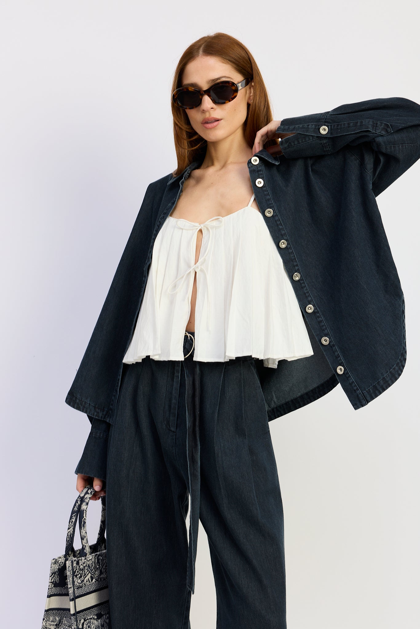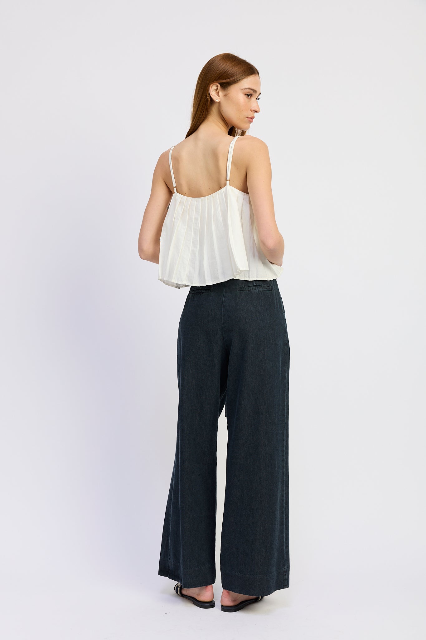 Dual Tie Front Strappy Pleated Flyaway Tank