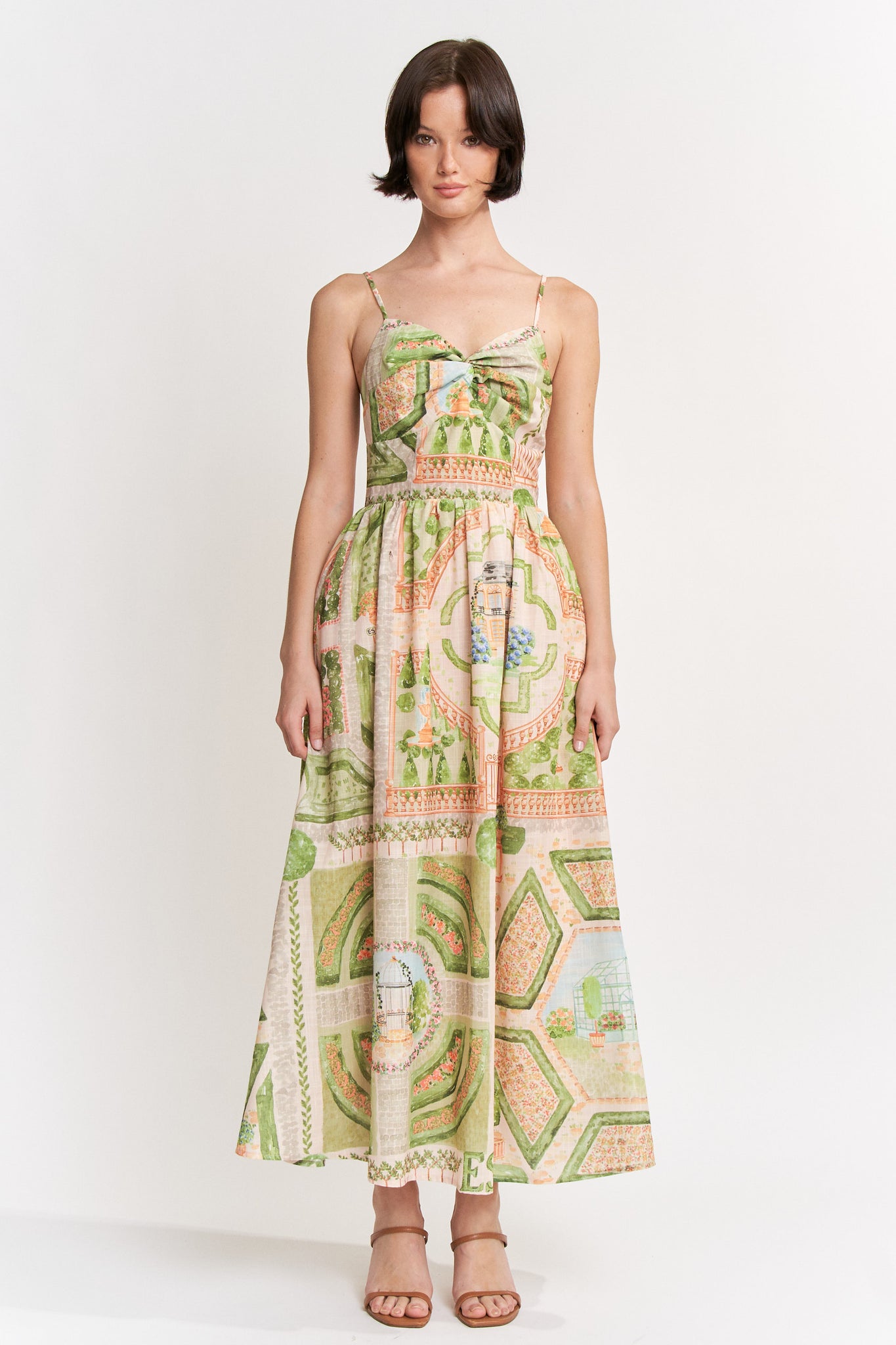 Twist Bust Scarf Print Corset Detail Maxi Dress