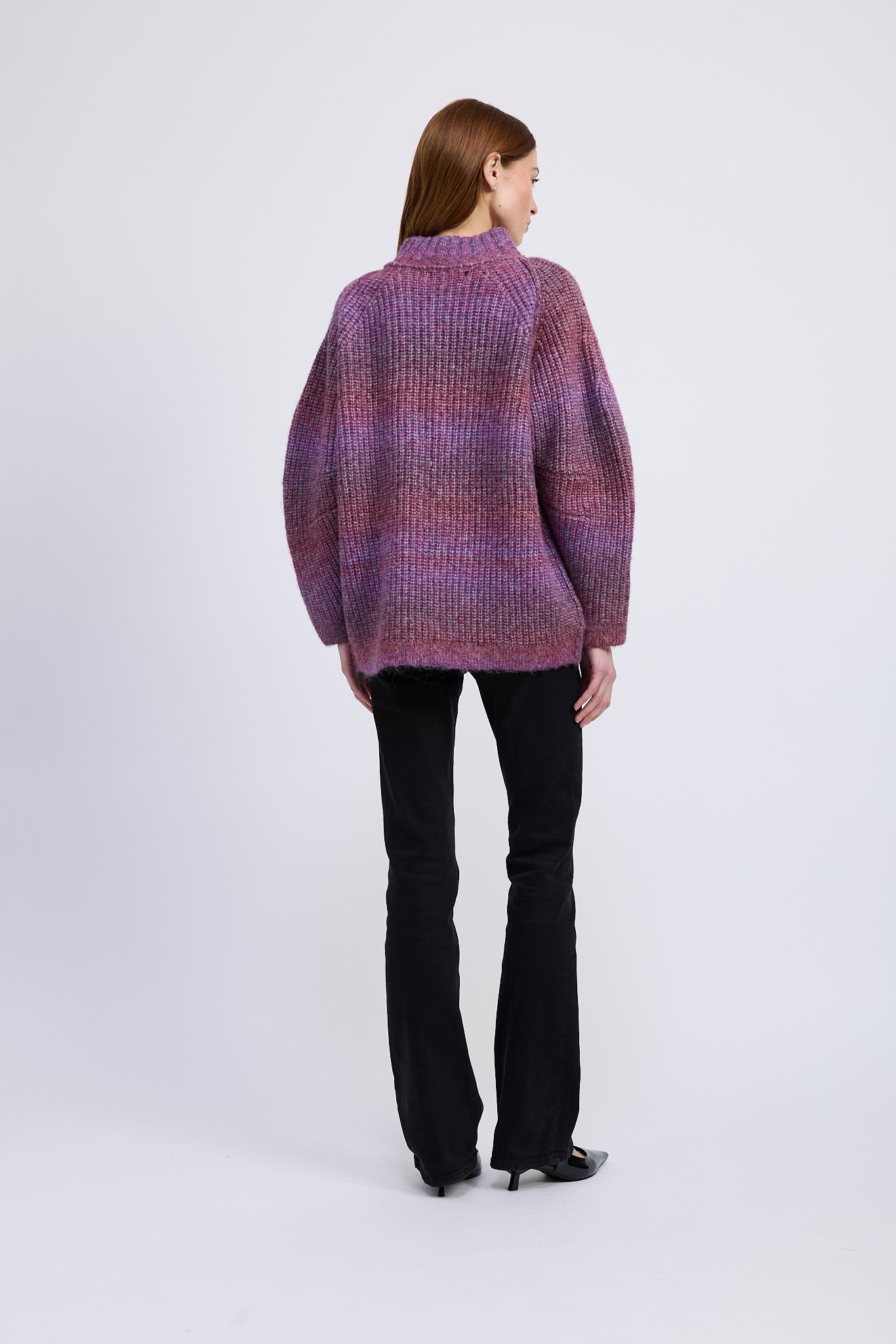 Ombre Knit Oversized Raglan Barrel Sleeve Rib Sweater