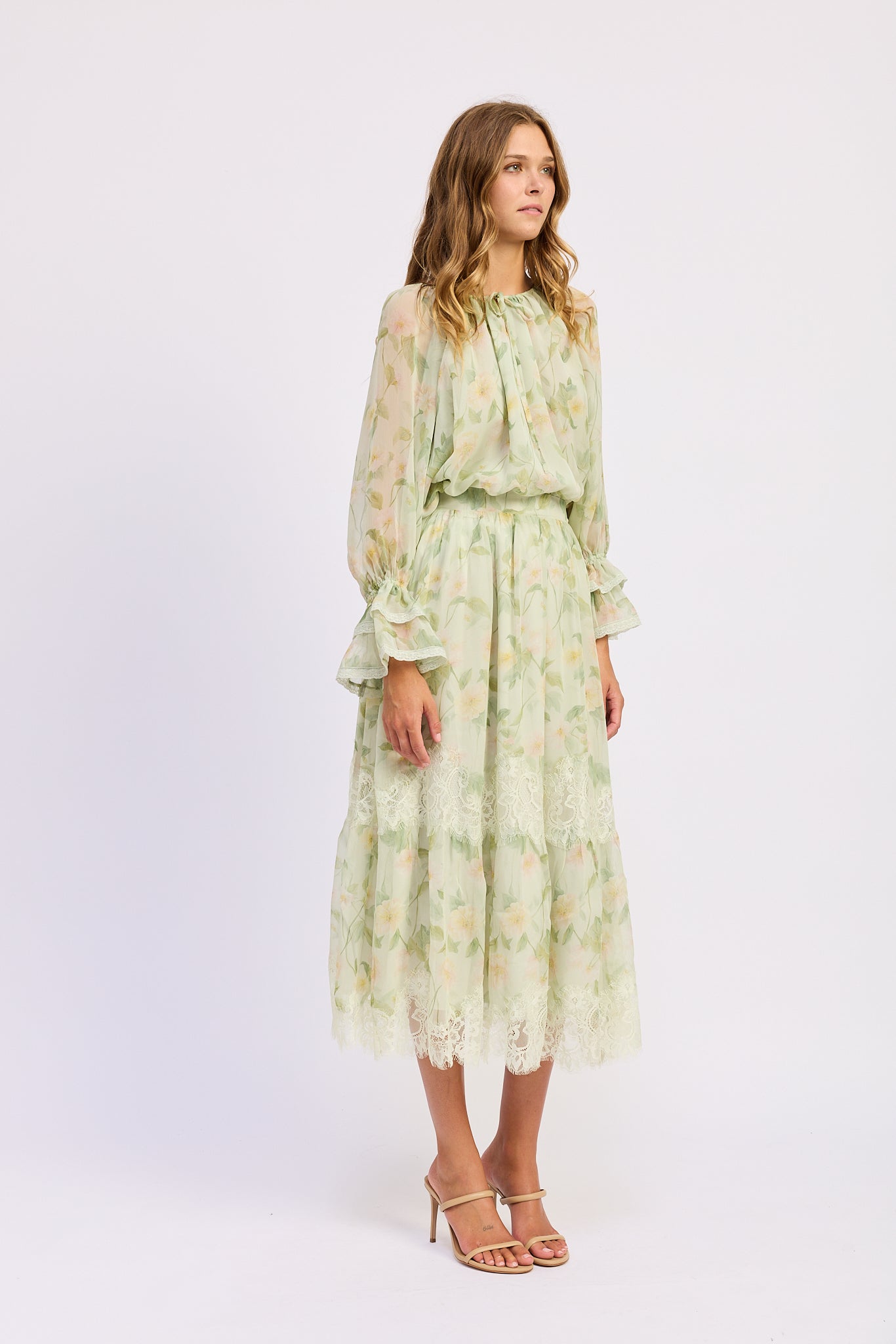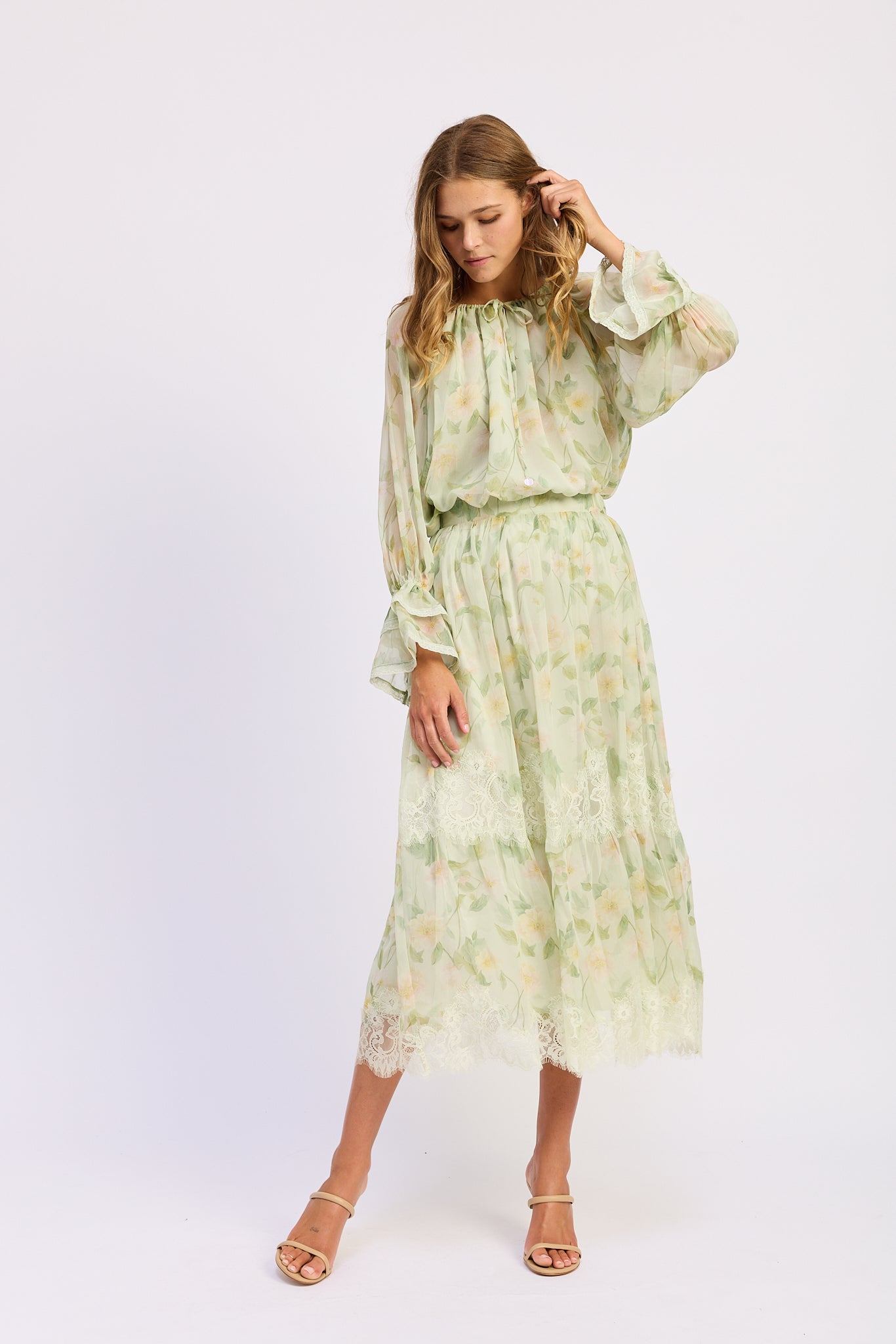 Chiffon Lace Inset Maxi Skirt
