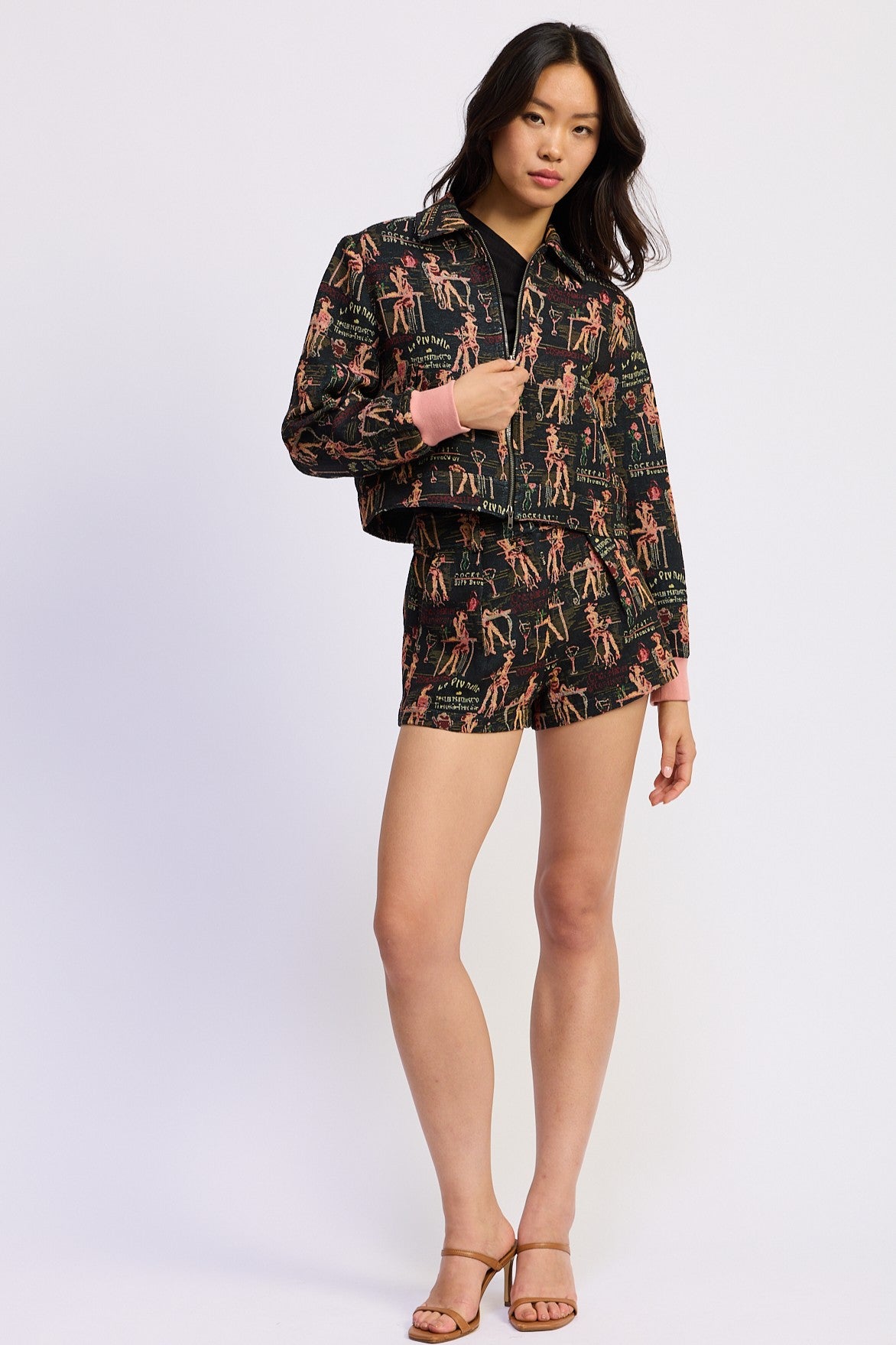 Jacquard Midi Rise Pleat Shorts